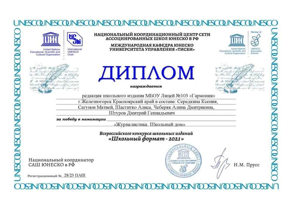 входящих в Сеть ассоциированных школ ЮНЕСКО, любых видов и форматов, публикующие на своих страницах интересный и актуальный материал о событиях в родной школе, городе или поселке, в мире. Уже второй год сотрудники пресс-центра «Школьный дом» являются конкурсантами этого престижного мероприятия.