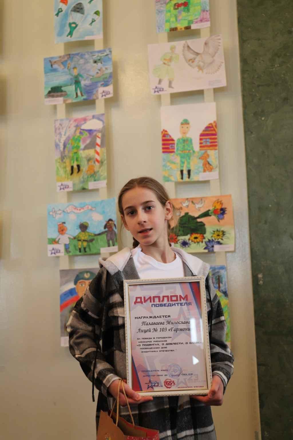 Ученицы нашего Лицея приняли участие в концерте в ДК и поздравили защитников Отечества. Также стали известны результаты городского конкурса рисунков «О подвигах, о доблести, о славе».