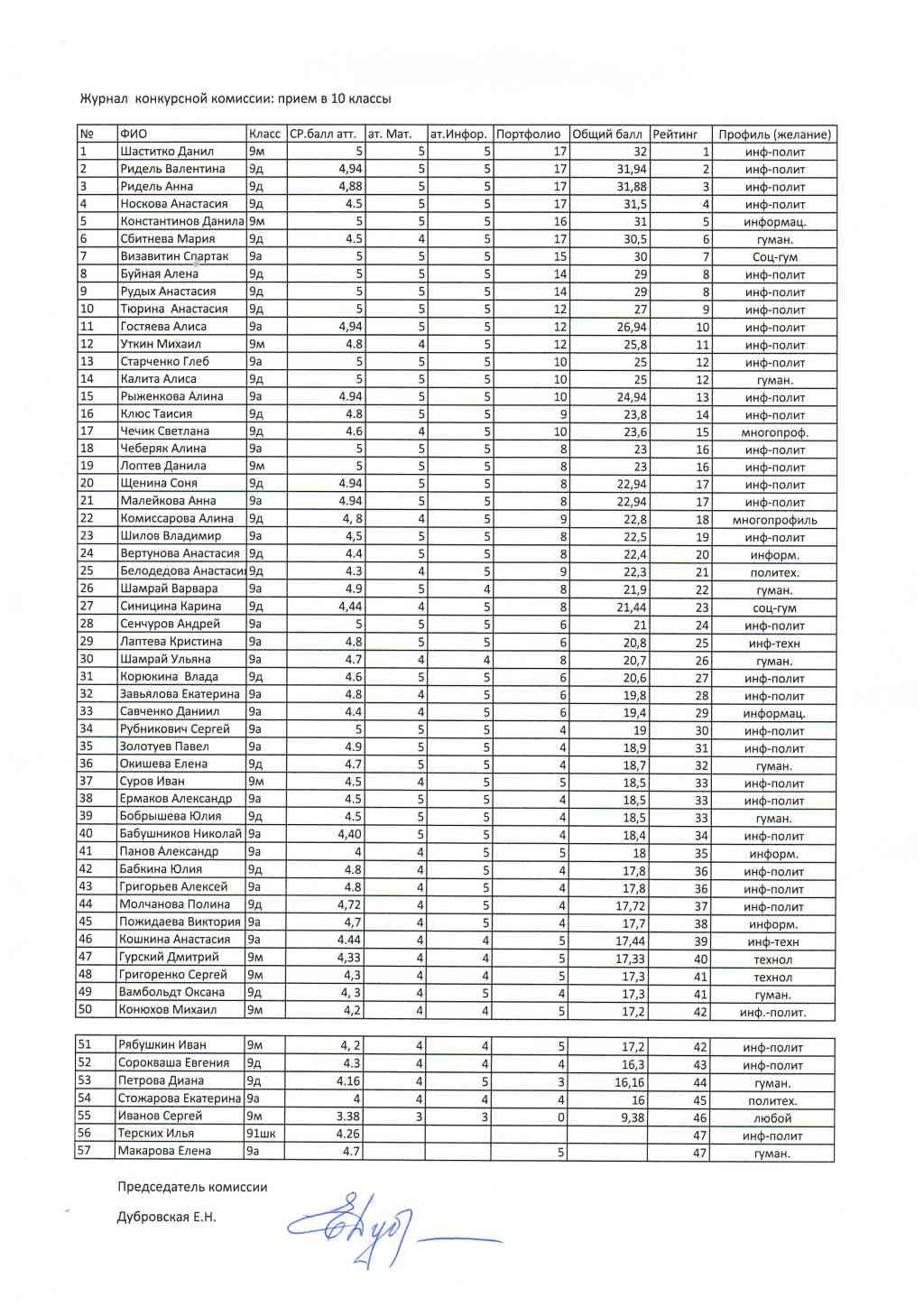 03.07.2017Прошло зачисление на конкурсной основе в два профильных 10 класса!