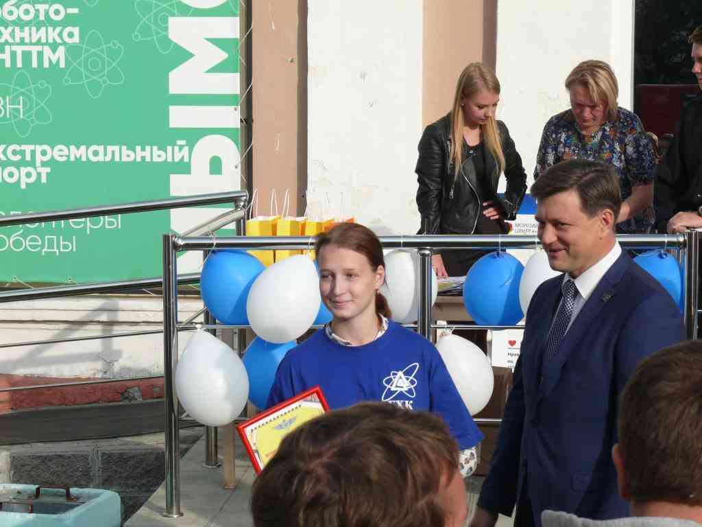 А награждение происходило на площадке перед зданием Молодежного центра. Перед этим торжественным действом к присутствующим обратился глава ЗАТО г. Железногорск Вадим Викторович Медведев. А затем заслуженные награды получили руководители ТОС, командиры и бойцы. В Лицее №103 это Елена Анатольевна Чумичева, Алексей Дмитриевич Савочкин и ученица 10 класса Настя Носкова.