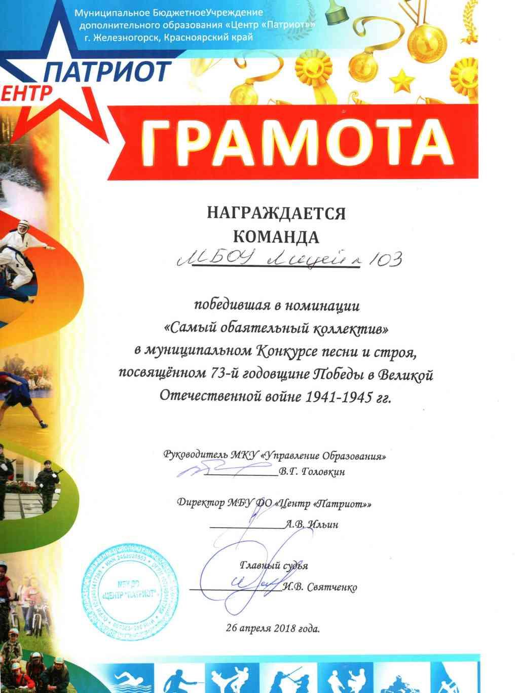 МБОУ Лицей 103 «Гармония». ЗАТО Железногорск, Красноярский край, ул. 60 лет ВЛКСМ, 32