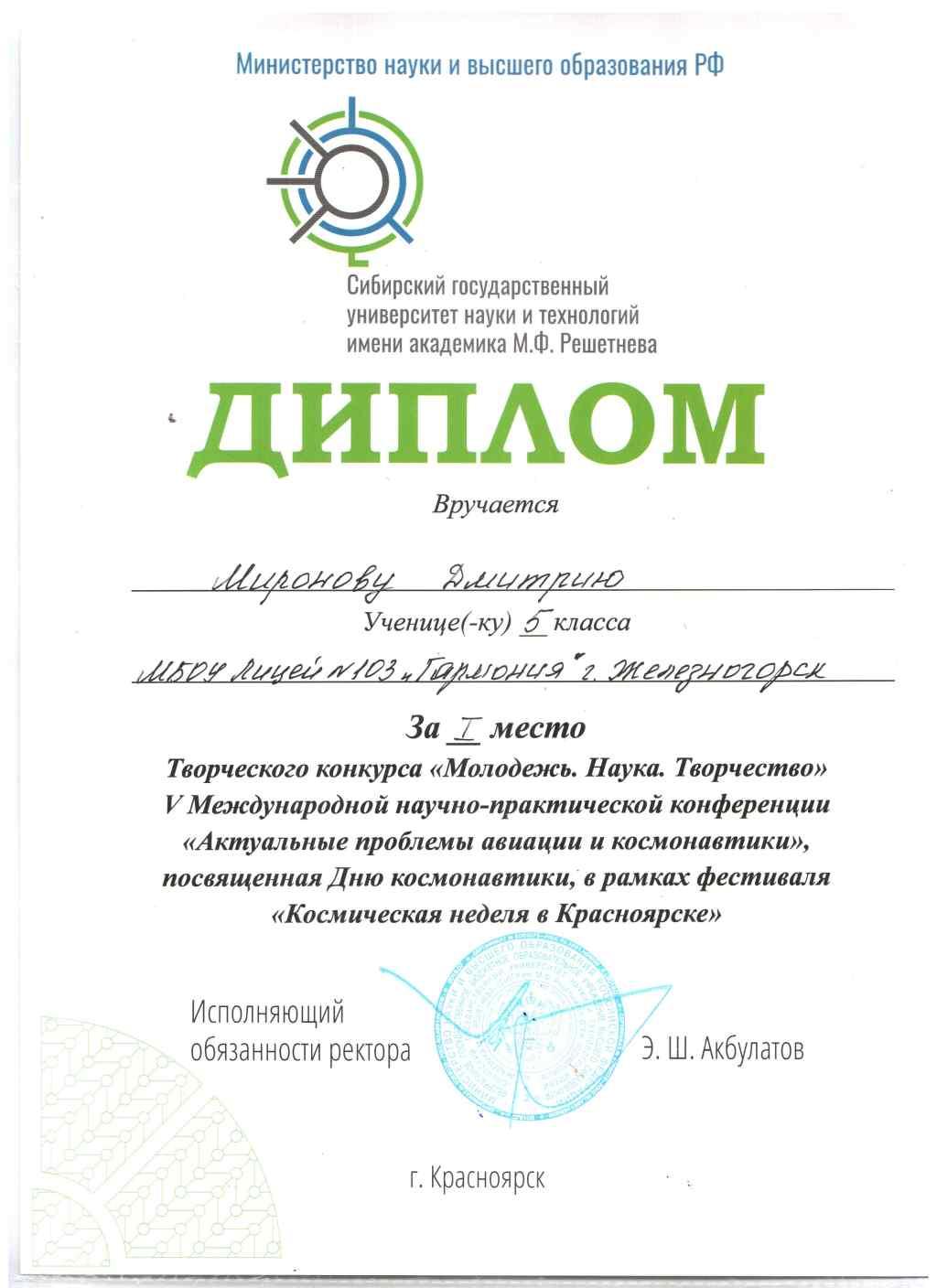 Жарков Кирилл, Парфёнов Иван – 1 место, работа «Модель Спасательного комплекса на основе пикоспутника». Руководители: Васильцова Ирина Константиновна, методист МБУ ДО «СЮТ»; Власов Дмитрий Владиславович, инженер АО «ИСС».