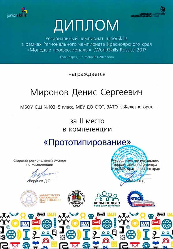 Денис Миронов стал призёром JuniorSkills в рамках прошедшего в Красноярске IV регионального чемпионата «Молодые профессионалы»!