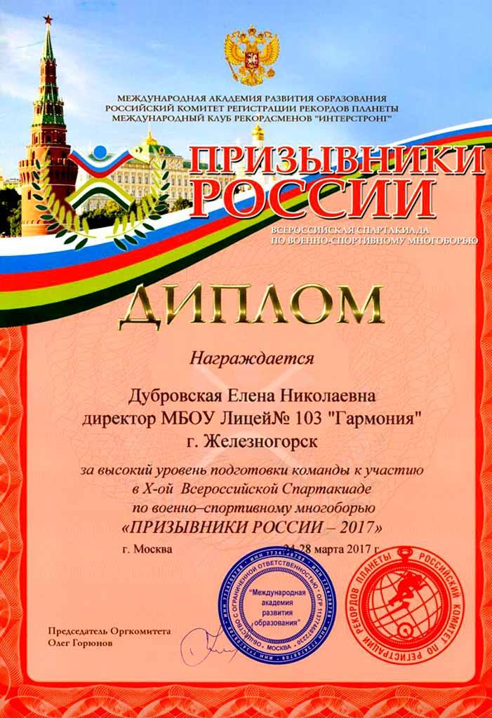 Лицей лауреат спартакиады «Призывники России - 2017»