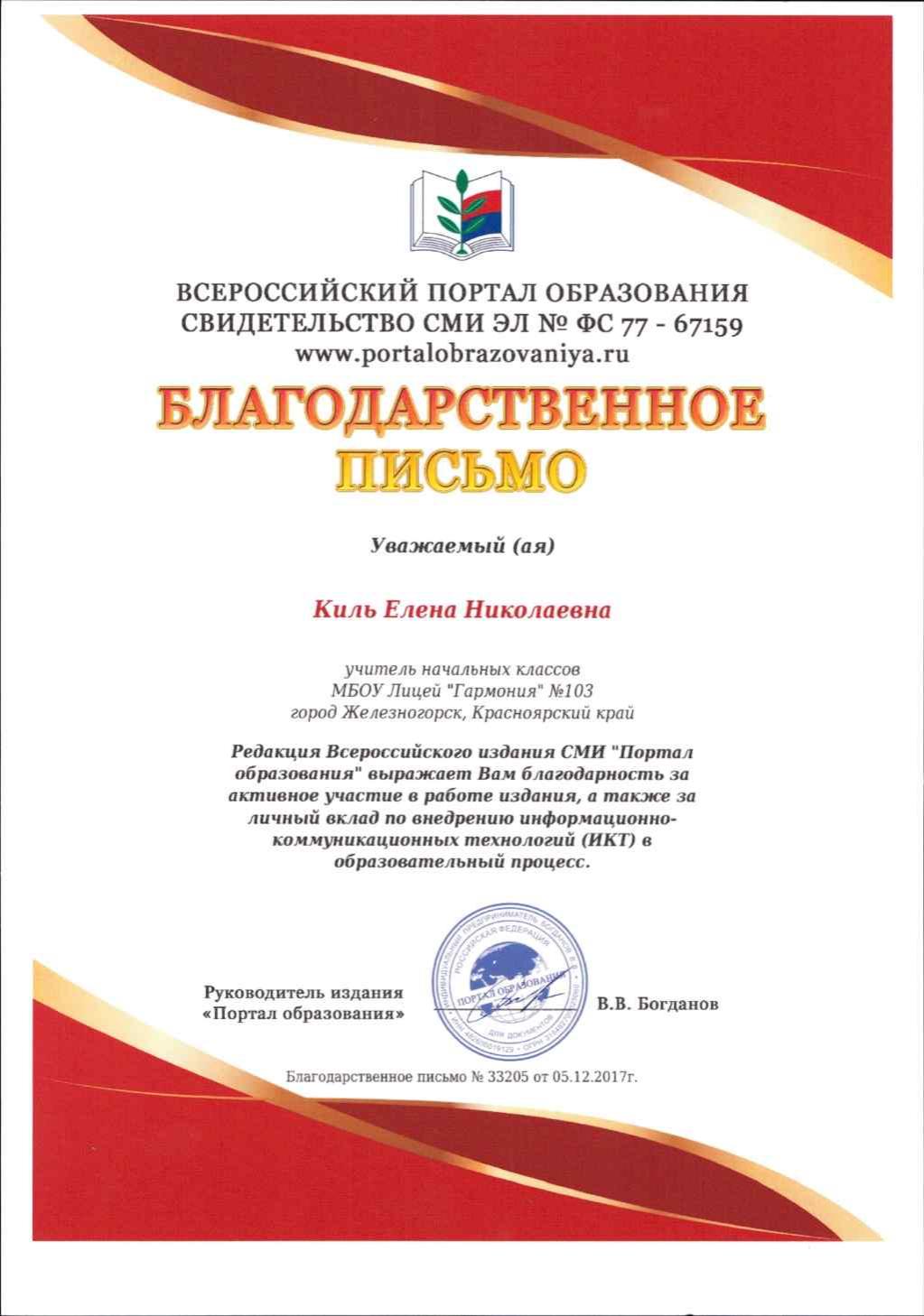 Поздравляем Киль Елену Николаевну, занявшую 1 место во всероссийском  конкурсе «Внеурочная образовательная деятельность педагога»