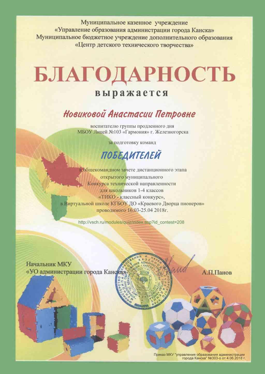 Открытый муниципальный конкурс технической направленности «ТИКО – классный конкурс» в Виртуальной школе КГБОУ ДО «Краевого Дворца пионеров» проводился с 16 марта по 22 мая 2018г.