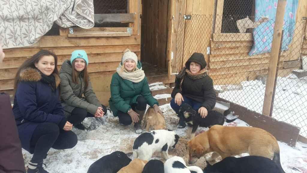 Волонтеры школьного добровольческого отряда российского движения школьников: Дмитриева Евгения, Сабакарь Кристина, Стрельцов Олег и Малейкова Юлия вчера сами кормили собак, гладили их, играли и очень здорово провели с ними время. Все собаки очень дружелюбные, ласковые и добрые. И ребята и собачки получили заряд эмоций и удовольствия.