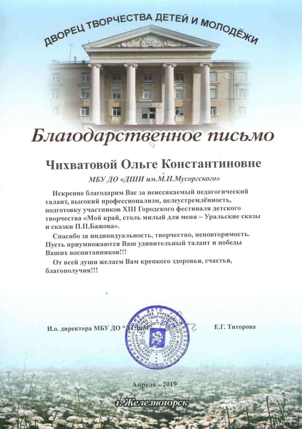 ХIII городского фестиваля детского изобразительного и декоративно-прикладного творчества «Мой край, столь милый для меня. Уральские сказы и сказки П.П. Бажова», а также их руководителей.