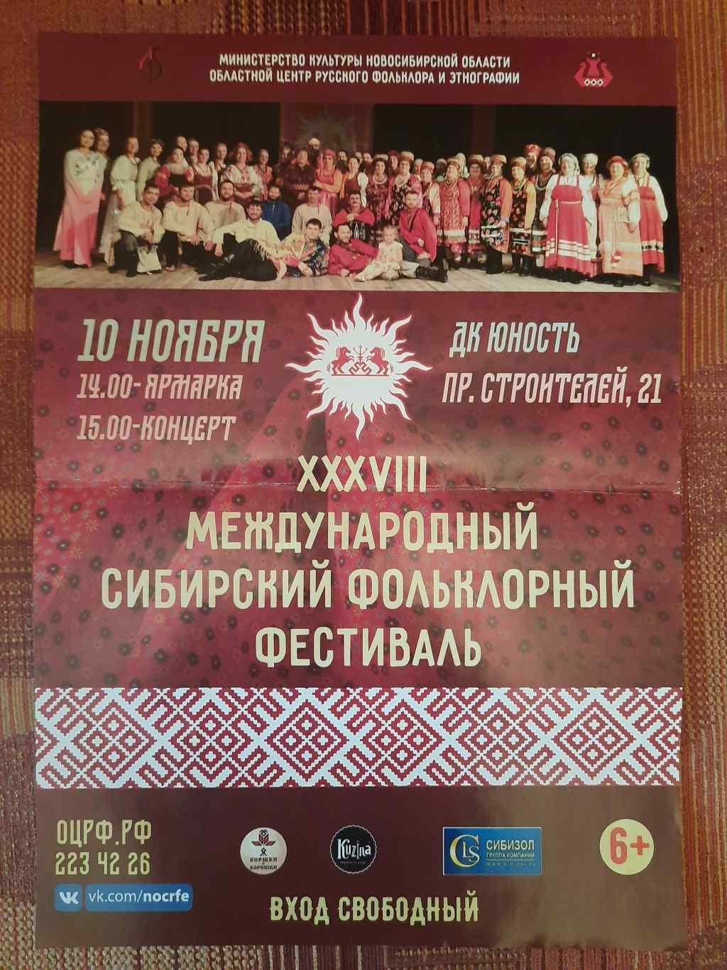 вернулся с XXXVIII Международного Сибирского фольклорного фестиваля, проходившего в осенние каникулы в  г. Новосибирске.